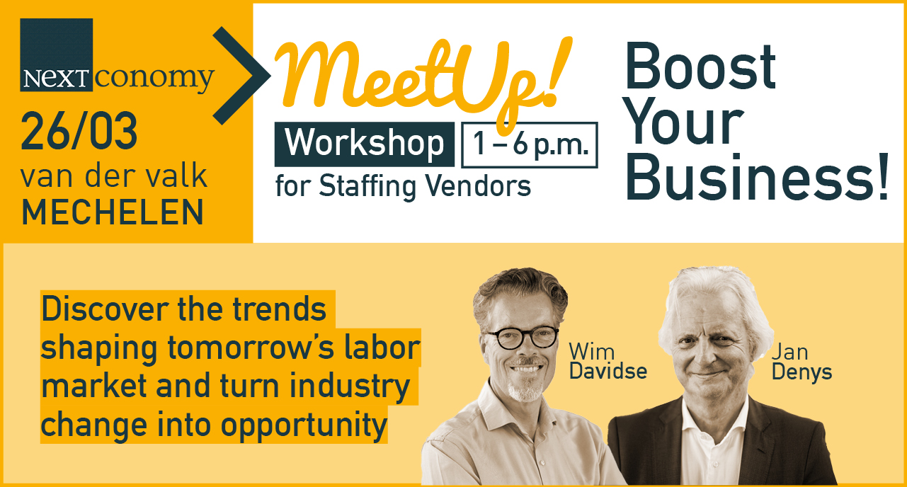 Are you part of a staffing company? Ask about our attractive package offer of NextConomy partnership combined with access to our three-part workshop series created especially for staffing professionals. Contact Marlies Thomasson marlies.ext@nextconomy.be